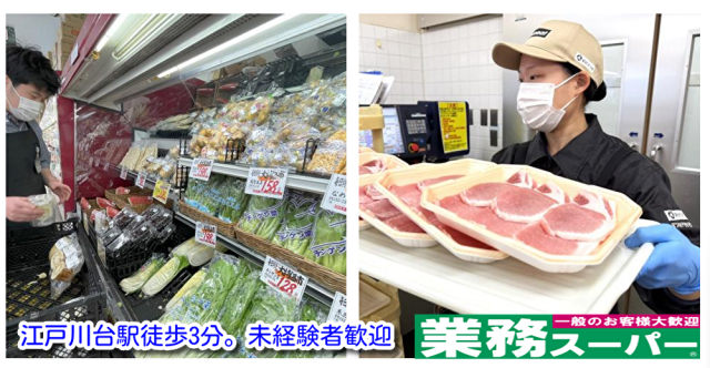 | 勤務地 | 【生鮮&業務スーパー 江戸川台店】 千葉県流山市江戸川台東3丁目6-2 ※近隣店舗への配属・異動も有(ご希望を考慮) |