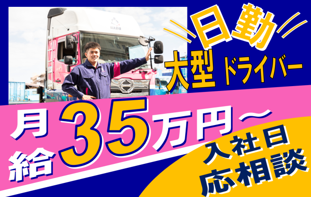 隅田川支店 未経験歓迎 月給35万円以上 日勤大型ドライバー大募集 30代~50代活躍中