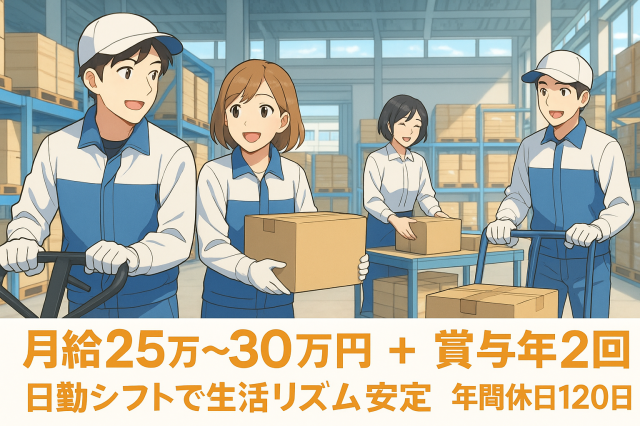 【正社員×日勤ワーク】倉庫内軽作業スタッフ|月給25万~30万円|年間休日120日