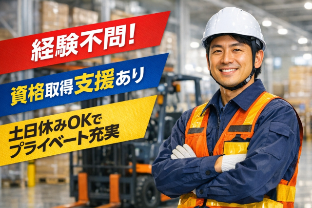 | 資格・経験 | 未経験歓迎/学歴不問/資格不問 第二新卒歓迎/ブランク歓迎 【必須資格】 特になし 【歓迎資格】 ・フォークリフト運転技能者 ・床上操作式クレーン運転技能者 ・玉掛技能者 ※全て入社後に取得OK... |