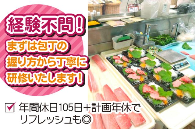 | 資格・経験 | 年齢・学歴不問 経験不問 (包丁の扱い方からお教えいたします) 〈こんな方も歓迎します〉 ・趣味が釣りで、釣った魚は自分で捌いてるような方 ◆経験者の方 スーパーや百貨店の水産部門での経験や、 鮮... |