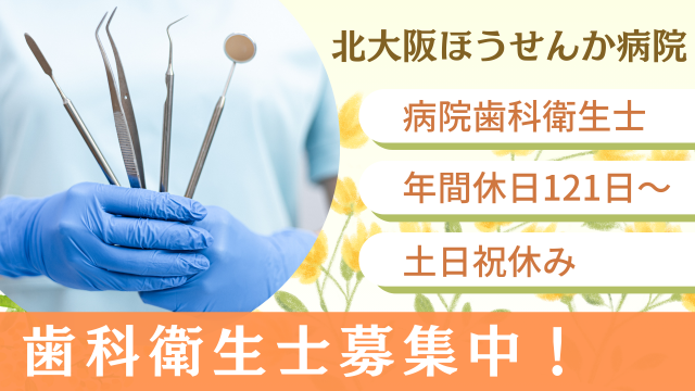 【茨木市】病院歯科衛生士|北大阪ほうせんか病院|年休121日|残業10h/月未満