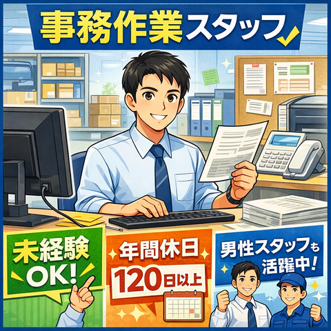 \男性活躍中!未経験OK/ 年間休日120日以上×残業月5時間以内の事務職